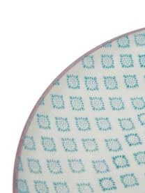 Teller 3: Cremeweiß, Blau mit rosanem Rand